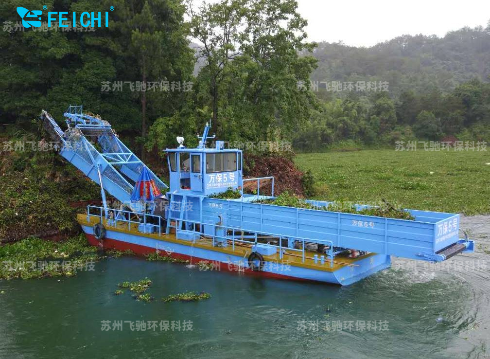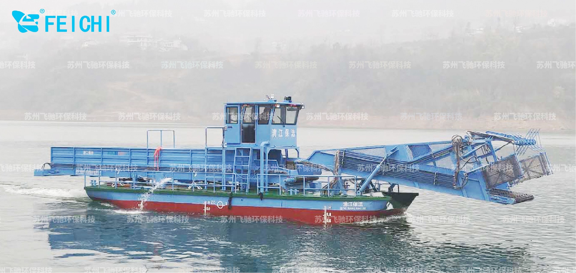 水域保潔供應(yīng)商:飛馳環(huán)保生產(chǎn)打撈船,割草船,浮萍收集船