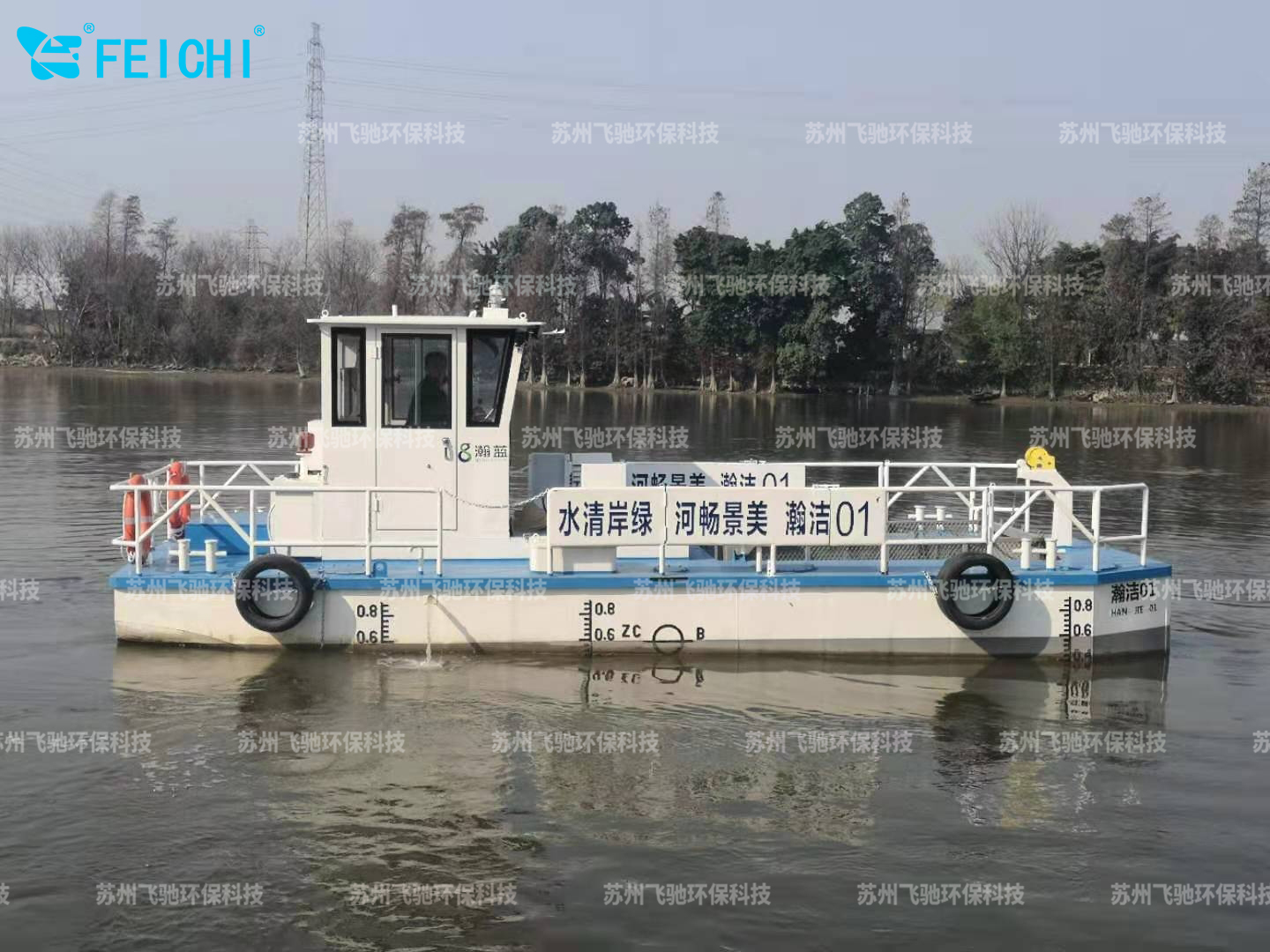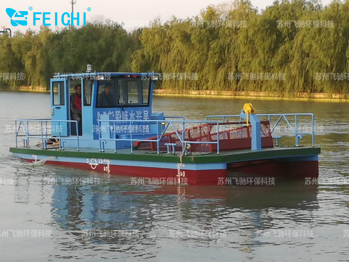 水域保潔供應(yīng)商:飛馳環(huán)保生產(chǎn)打撈船,割草船,浮萍收集船