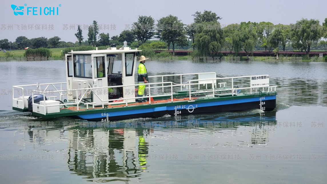水域保潔供應(yīng)商:飛馳環(huán)保生產(chǎn)打撈船,割草船,浮萍收集船