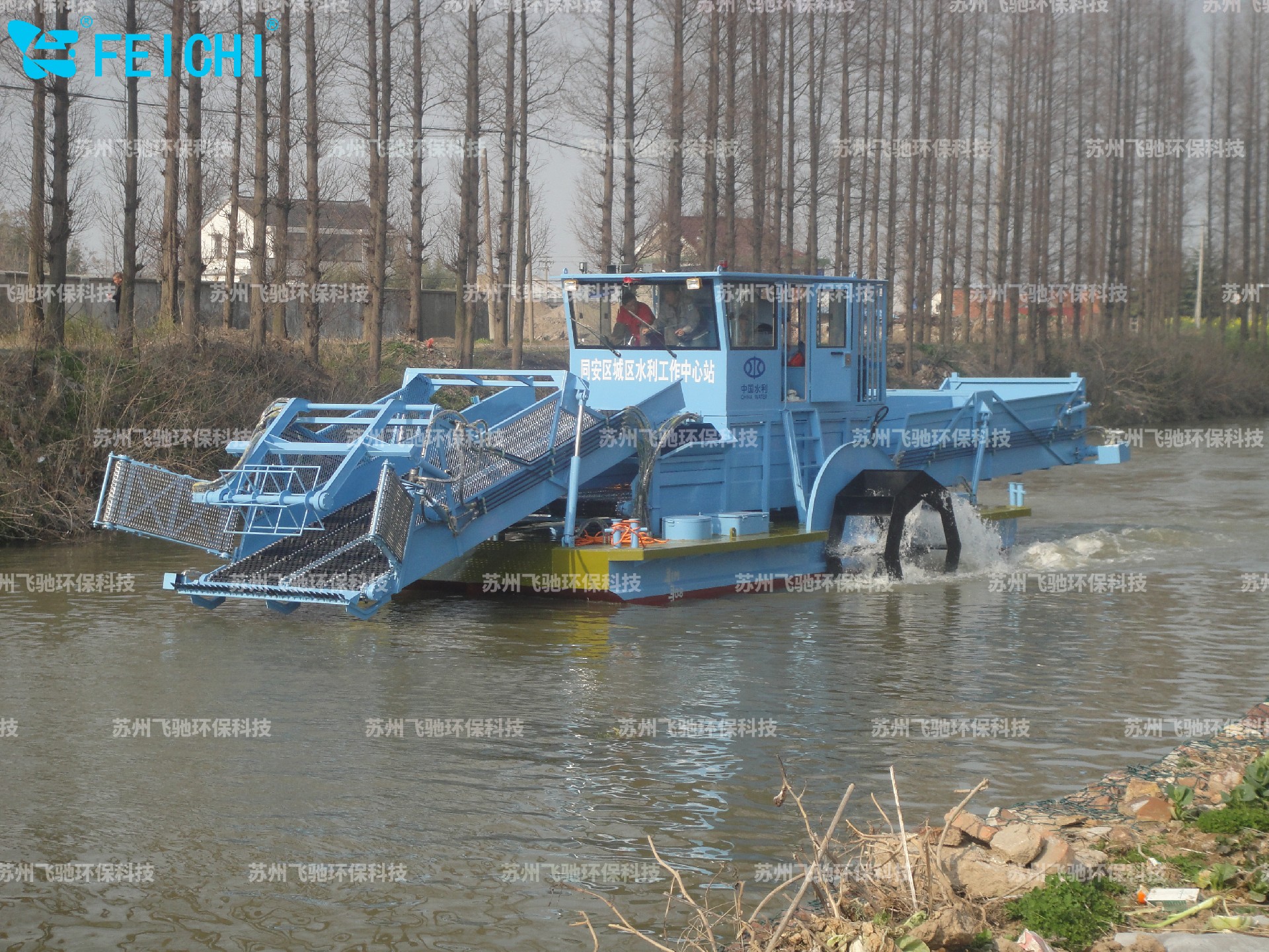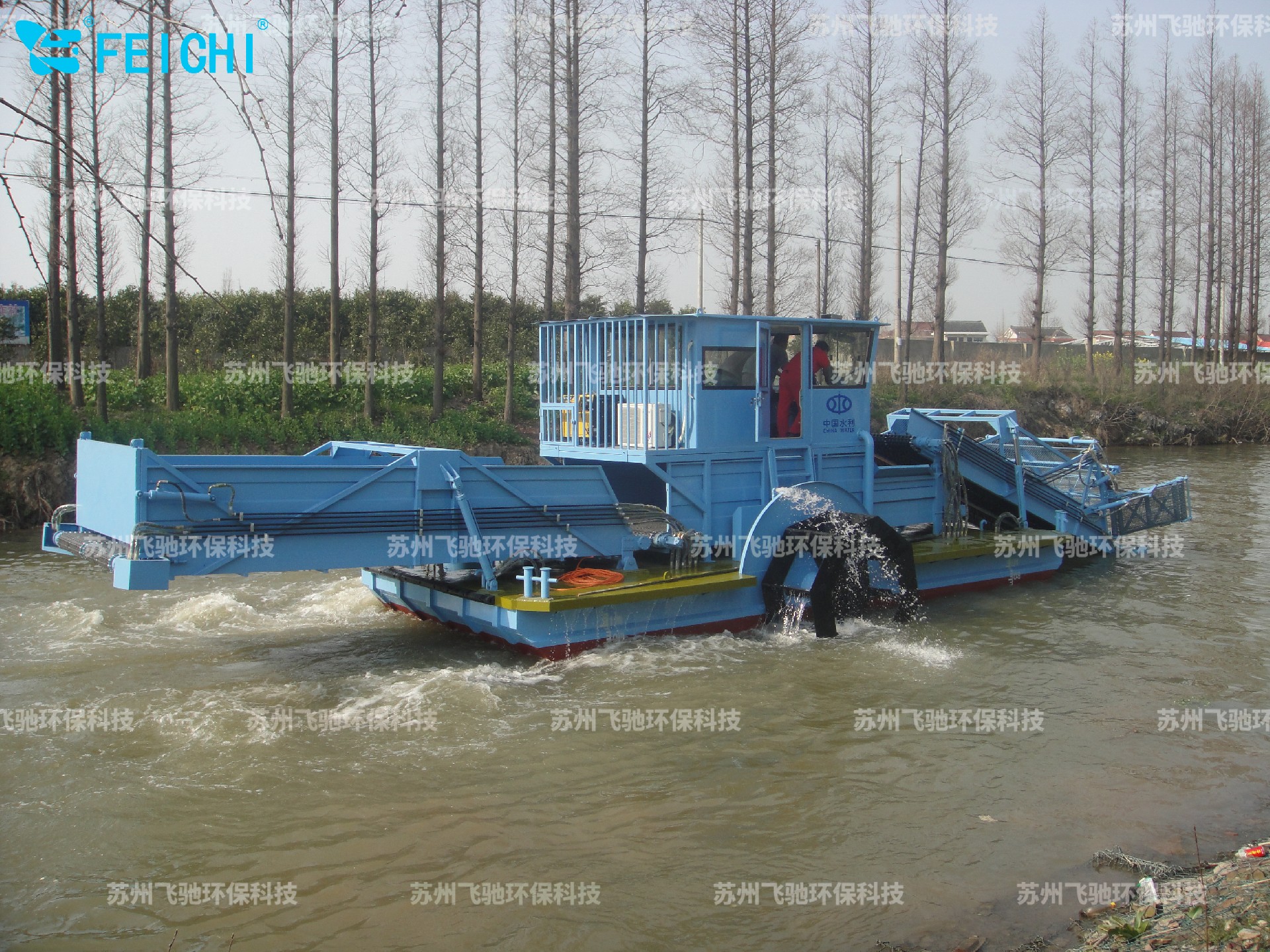 水域保潔供應(yīng)商:飛馳環(huán)保生產(chǎn)打撈船,割草船,浮萍收集船