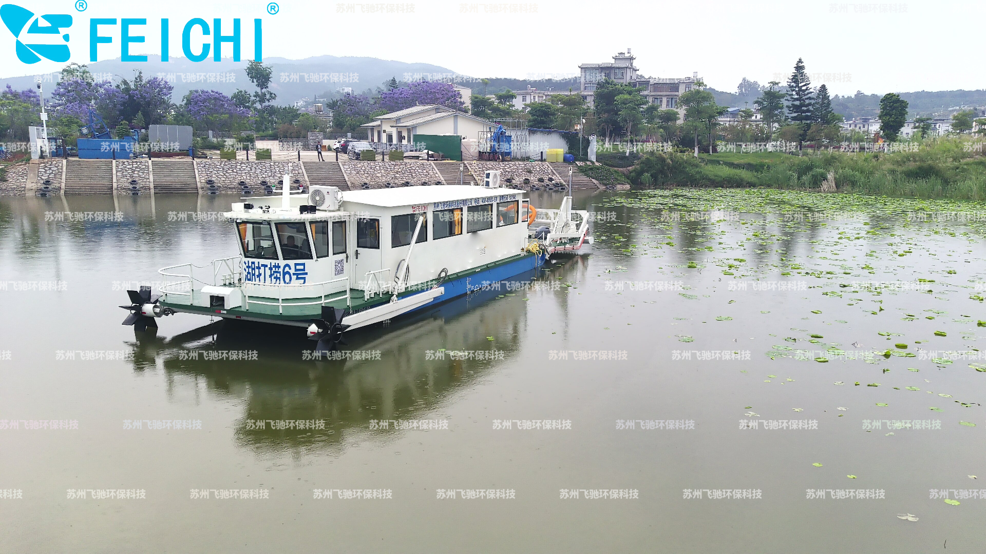 水域保潔供應(yīng)商:飛馳環(huán)保生產(chǎn)打撈船,割草船,浮萍收集船